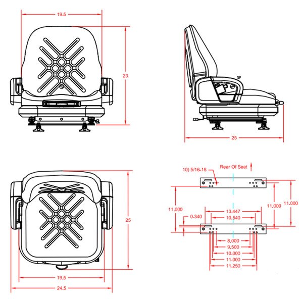 Replacement seat for forklifts. Contact an Industrial Seats Application Specialist if you have questions on seat-to-machinery fitment. (800) 223-7003.